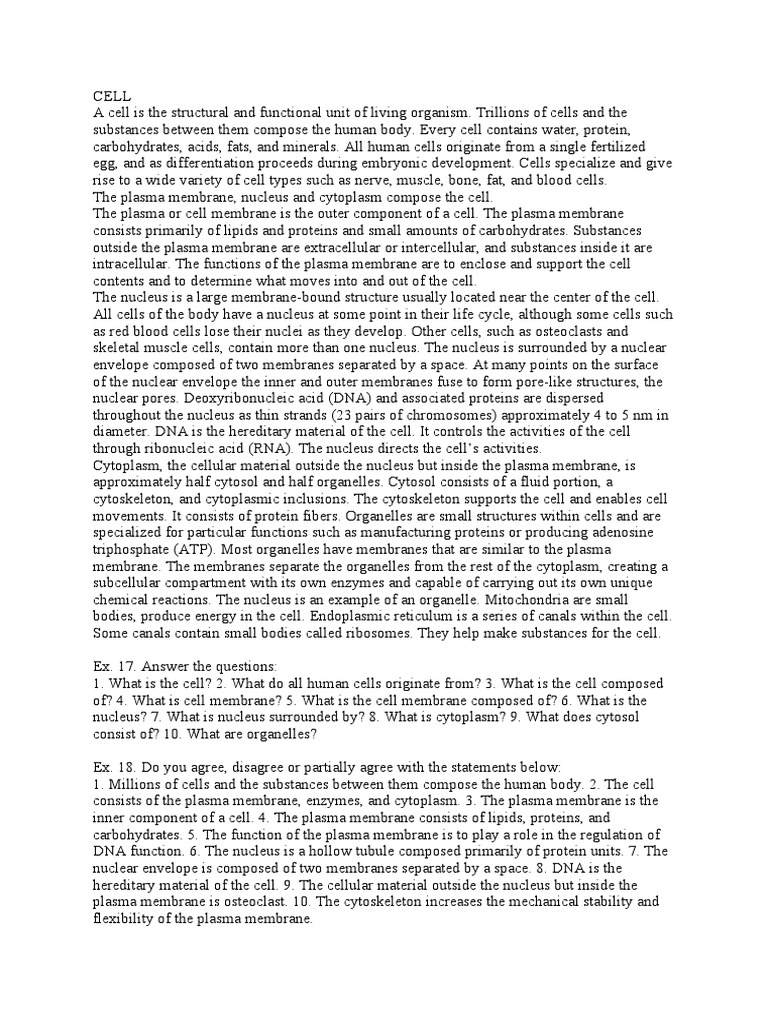 Cytolysis, or osmotic lysis, occurs when a cell bursts due to an osmotic imbalance that has caused excess water to diffuse into the cell. Bivalents, each composed of two chromosomes (four chromatids) align at the metaphase plate. All living organisms are composed of cells, from just one (unicellular) to many trillions (multicellular). The orientation is random, with either parental homologue on a side. The carbohydrates are short polysaccharides composed of a variety of different monosaccharides, and form a cell coat or glycocalyx outside the cell membrane. Learn all about various cell types, cellular anatomy, and cellular processes. Cell biology is the study of cells, their physiology, structure, and life cycle. Water can enter the cell by diffusion through the cell membrane or through selective membrane channels called aquaporins, which greatly facilitate the flow of water. Air cell an air space forms when the contents of the egg cool and contract after the egg is laid. Aug 20, 2020 · a cell is the smallest unit that is typically considered alive and is a fundamental unit of life.